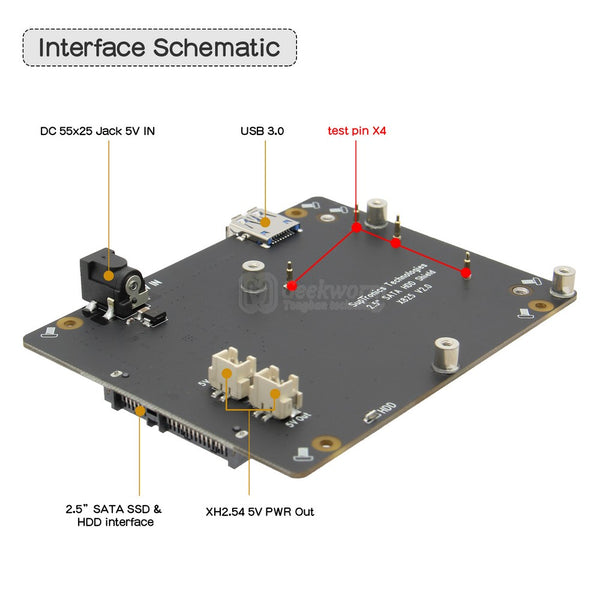 - USB 3.0 high-speed transmission will interfere with the Raspberry Pi's 2.4G WIFI signal,if you find the 2.4G signal is unstable, please try to use ethernet or WIFI 5G AP. (Please refer to: raspberrypiwiki.com/X825#Document)