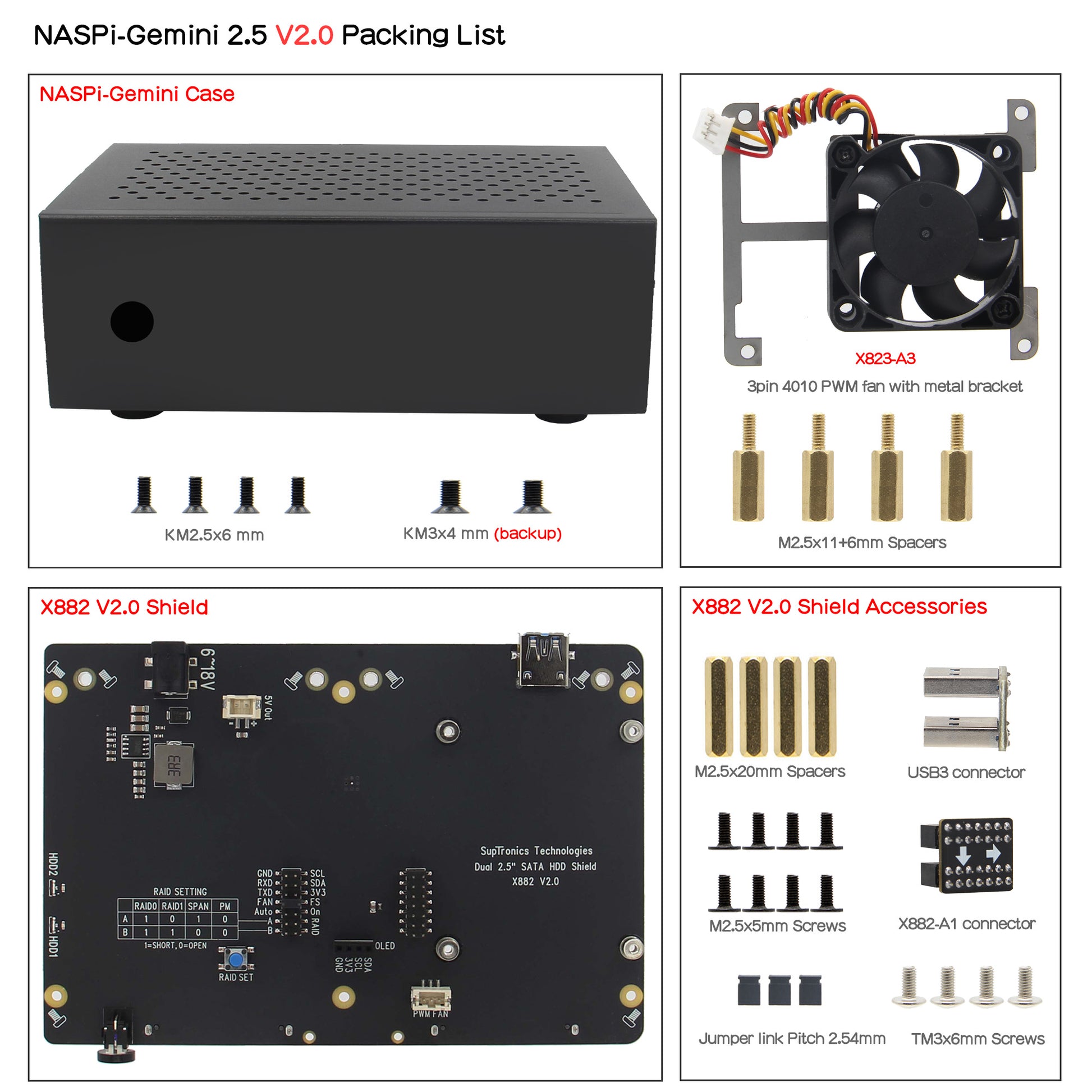 Read Me: The X882 V2.0 board for NASPi Gemini 2.5 has been discontinued, no stock any more, please refer to NASPi or NASPi Gemini 3.5.