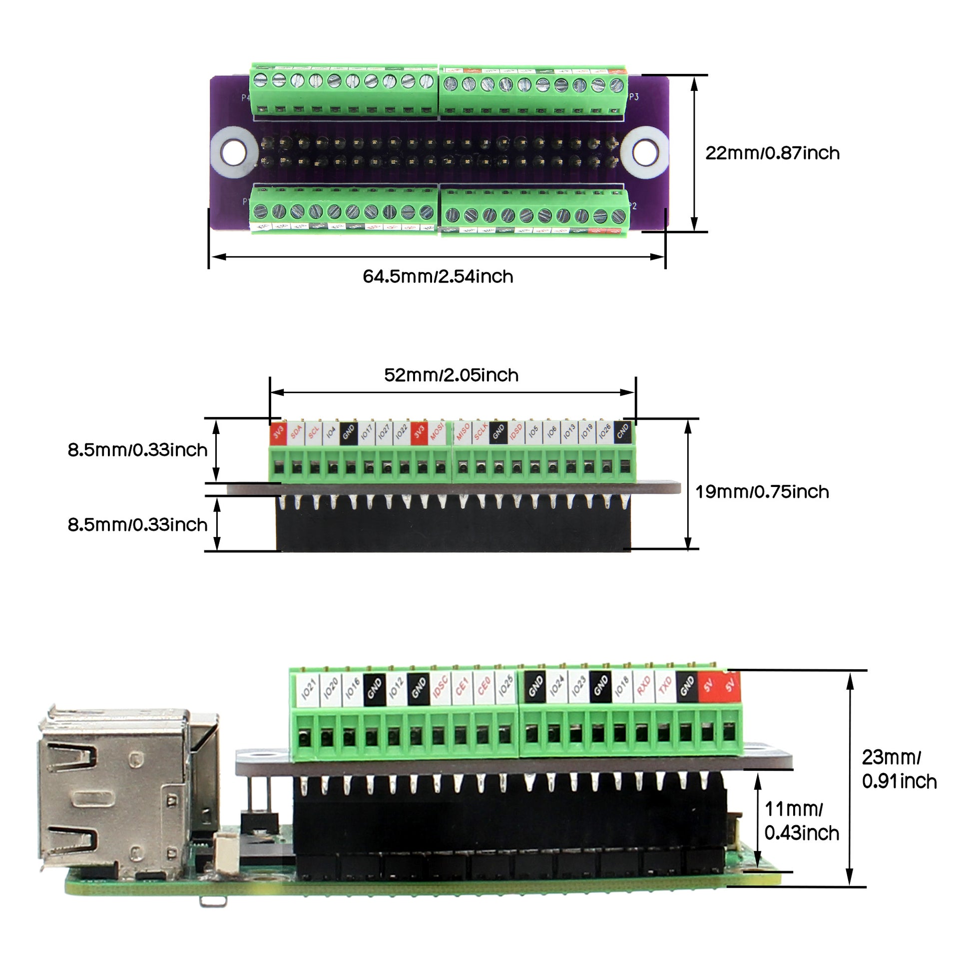 This mini terminal expansion board is designed for easy and convenient access to the GPIO pins of your Raspberry Pi. It features screw terminals for all 40 pins, allowing for simple cable connections. The compact design ensures that it does not take up additional space, making it ideal for DIY circuits and projects. Perfect for hobbyists and developers alike, this board enhances your Raspberry Pi experience by streamlining connections and simplifying circuit assembly. Model: G469