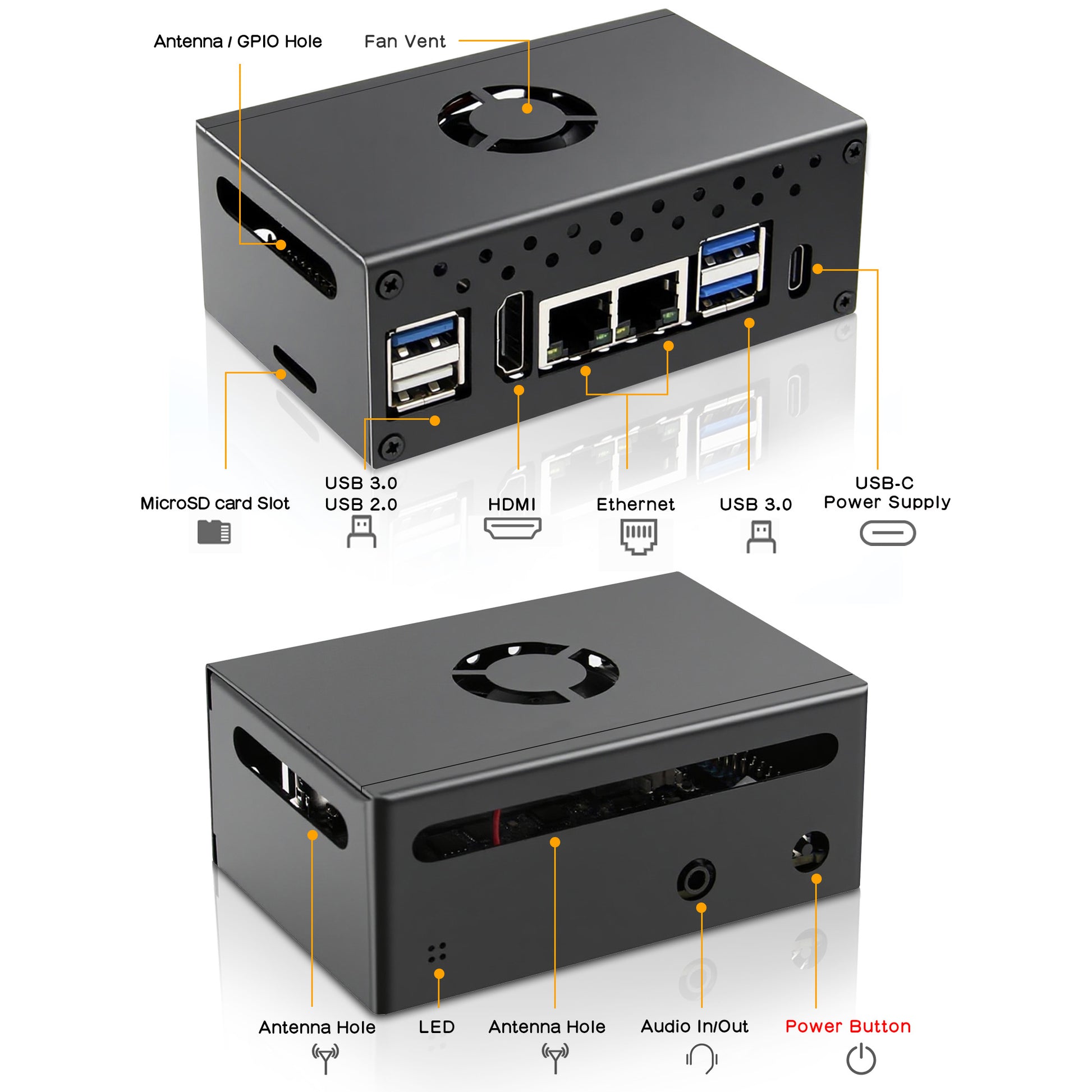 - Easy Access – All ports and slots align perfectly; dedicated openings for GPIO cable lead-out and TF card access.
