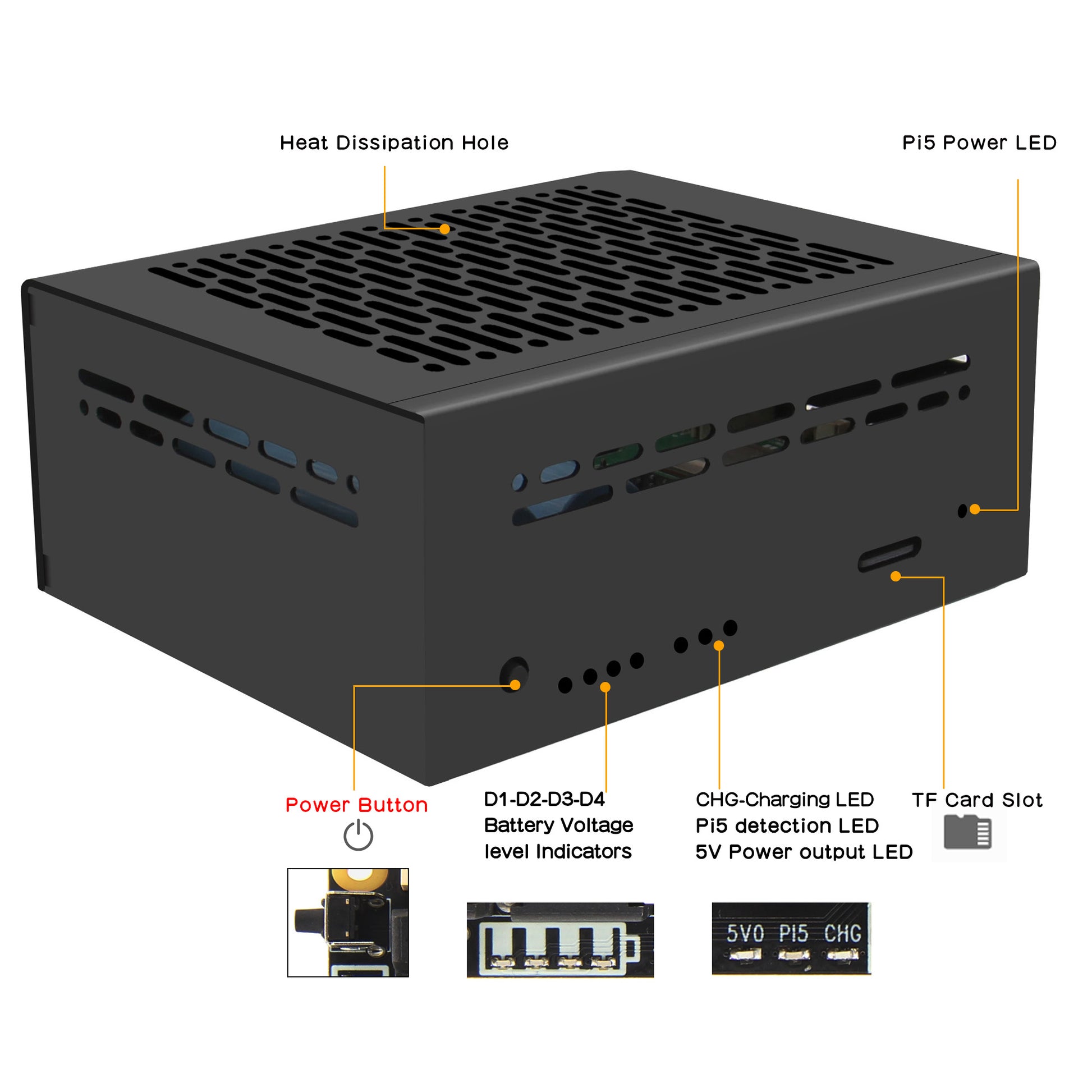 This X1200-c1 case is designed for the raspberry pi 5 X1201 ups shield only, it can fully accommodate the X1201 and the Raspberry Pi 5, with space reserved on the top for mounting the Raspberry Pi 5 Pip boards, such as the X1001, X1000, X1004, X1003 and M901 etc.