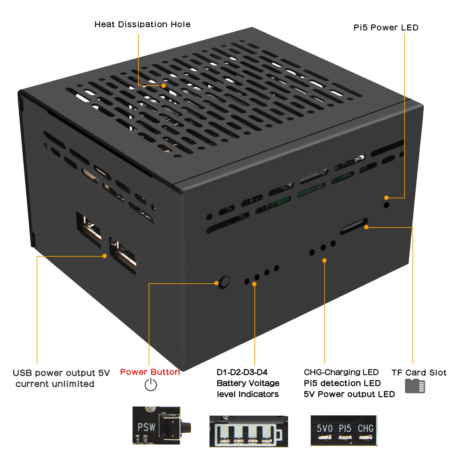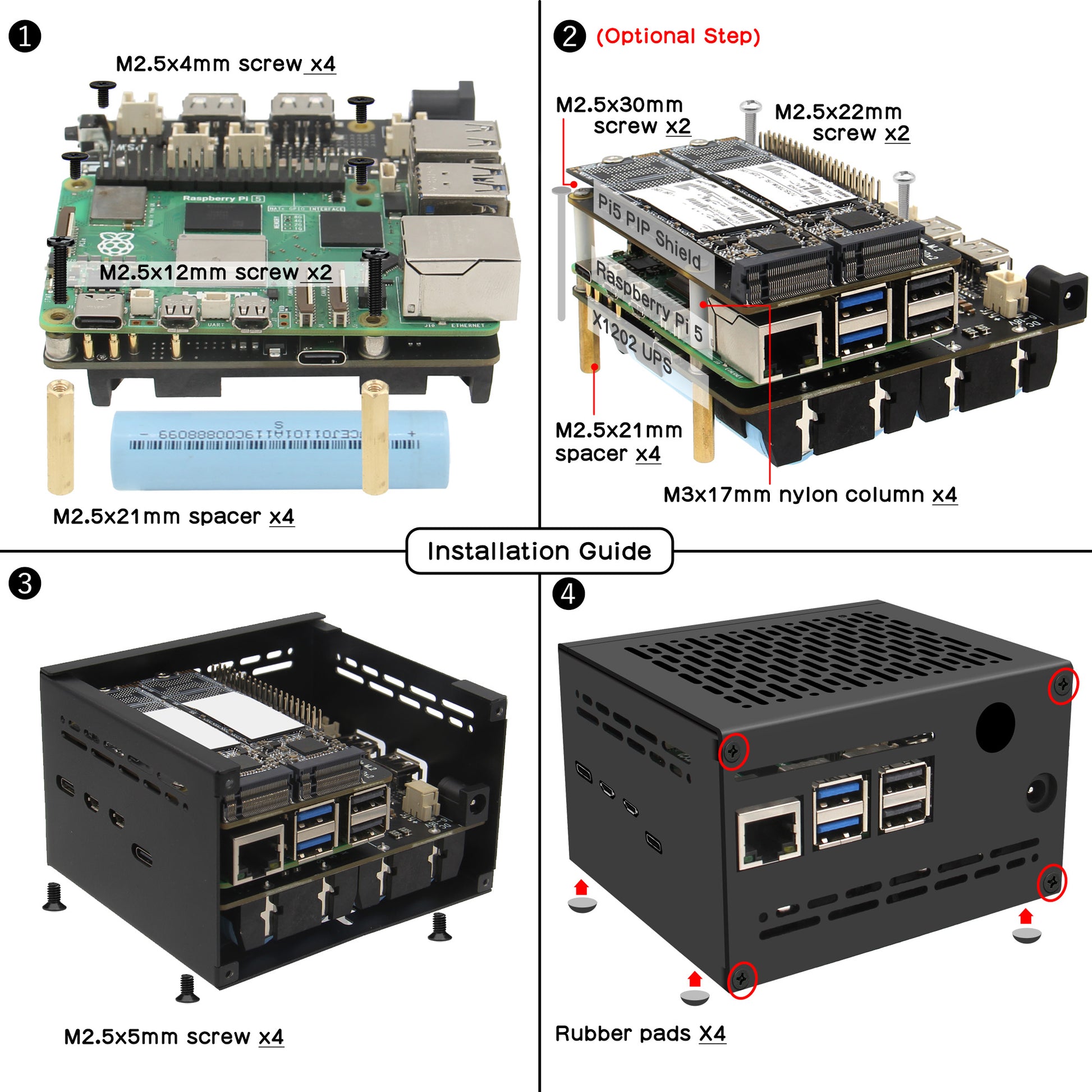 This x1202-c1 case is designed for the raspberry pi 5 X1202 ups shield only, it can fully accommodate the x1202 and the Raspberry Pi 5, with space reserved on the top for mounting the Raspberry Pi 5 Pip boards, such as the X1001, X1000, X1004, X1003 and M901 etc.
