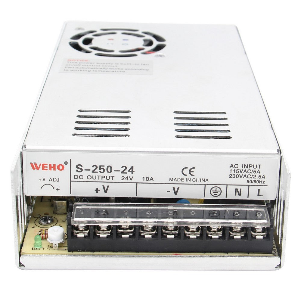 This is single output 24V 10A 250W Switching power supply, and it can provide upto 250W power output.