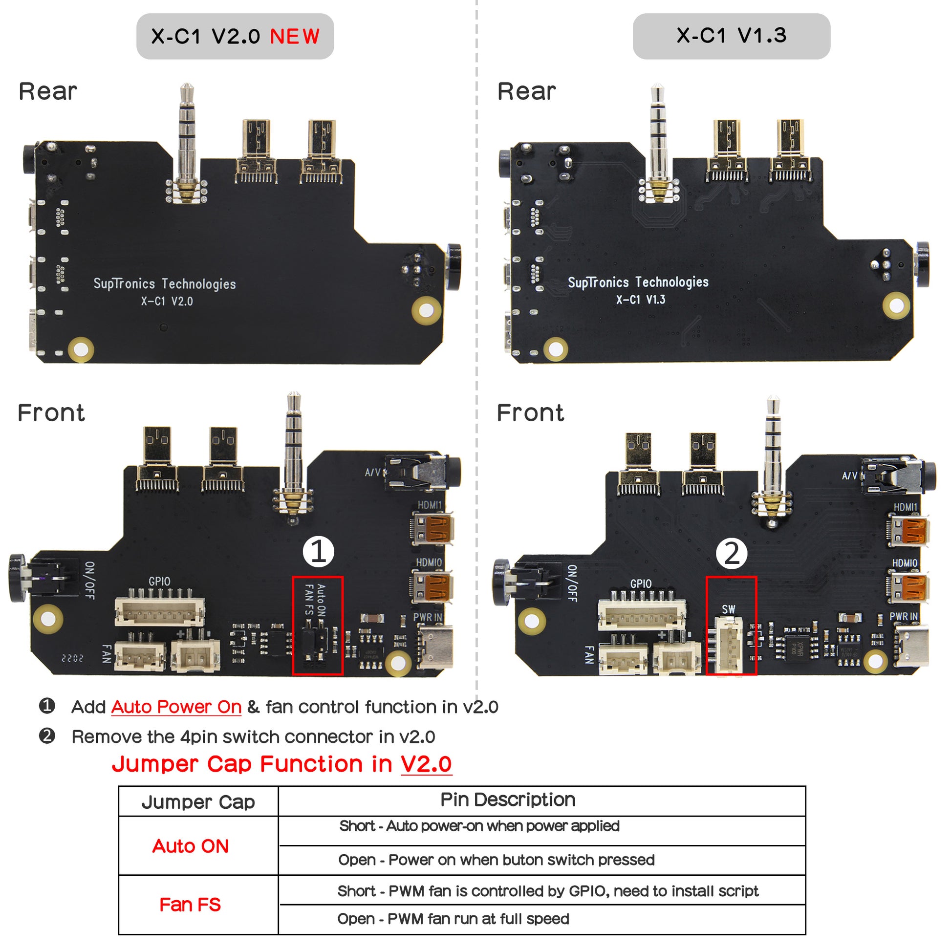 - For the X-C1 V2.0 adapter with auto power on function, refer to: https://geekworm.com/products/x-c1-v2