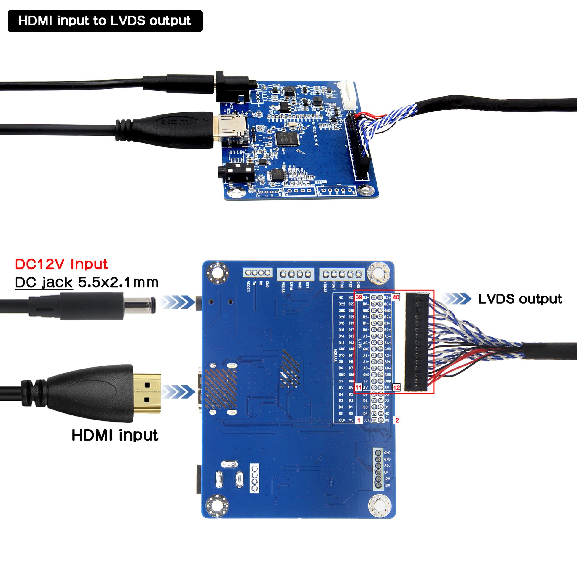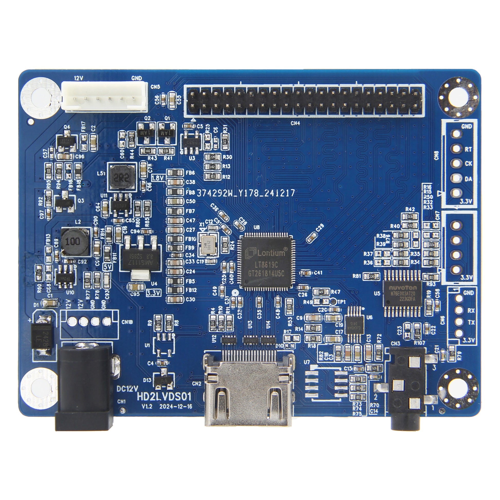 HDMI input to TTL RGB or LVDS output. The definition of the socket pin signal can be found in the characters on the back of the board.