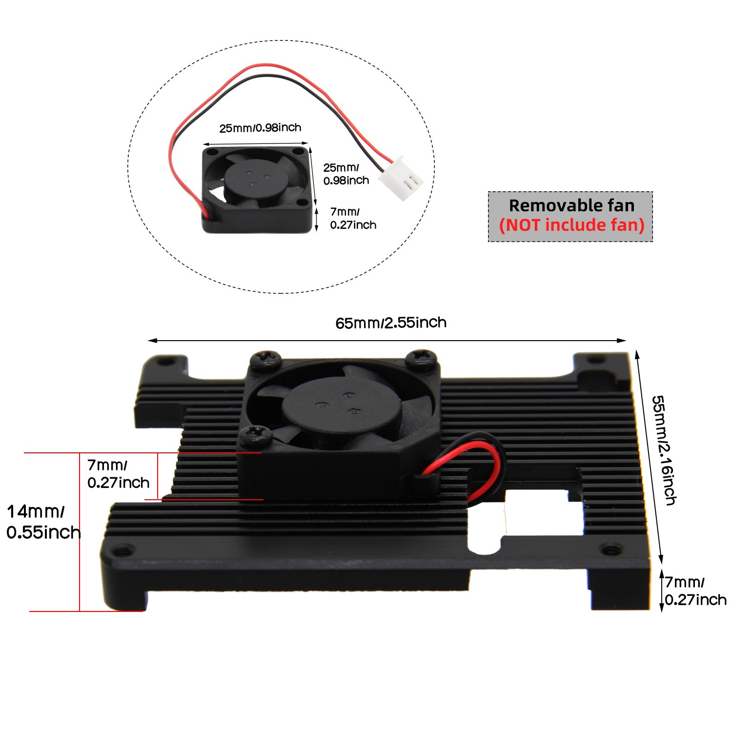 - Supports the installation of 25mm fans; Cooling fan can be added when the heat dissipation of a single aluminum heat sink is not enough, so that all heat dissipation problems can be solved.