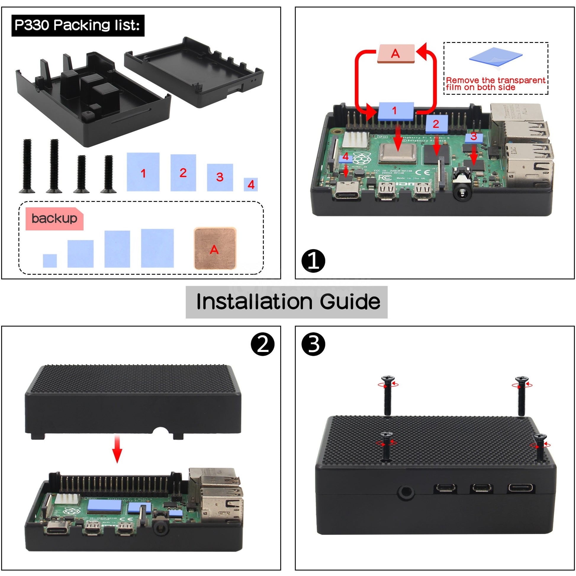 • 1 x Aluminum Alloy Case for Raspberry Pi 4(P330)