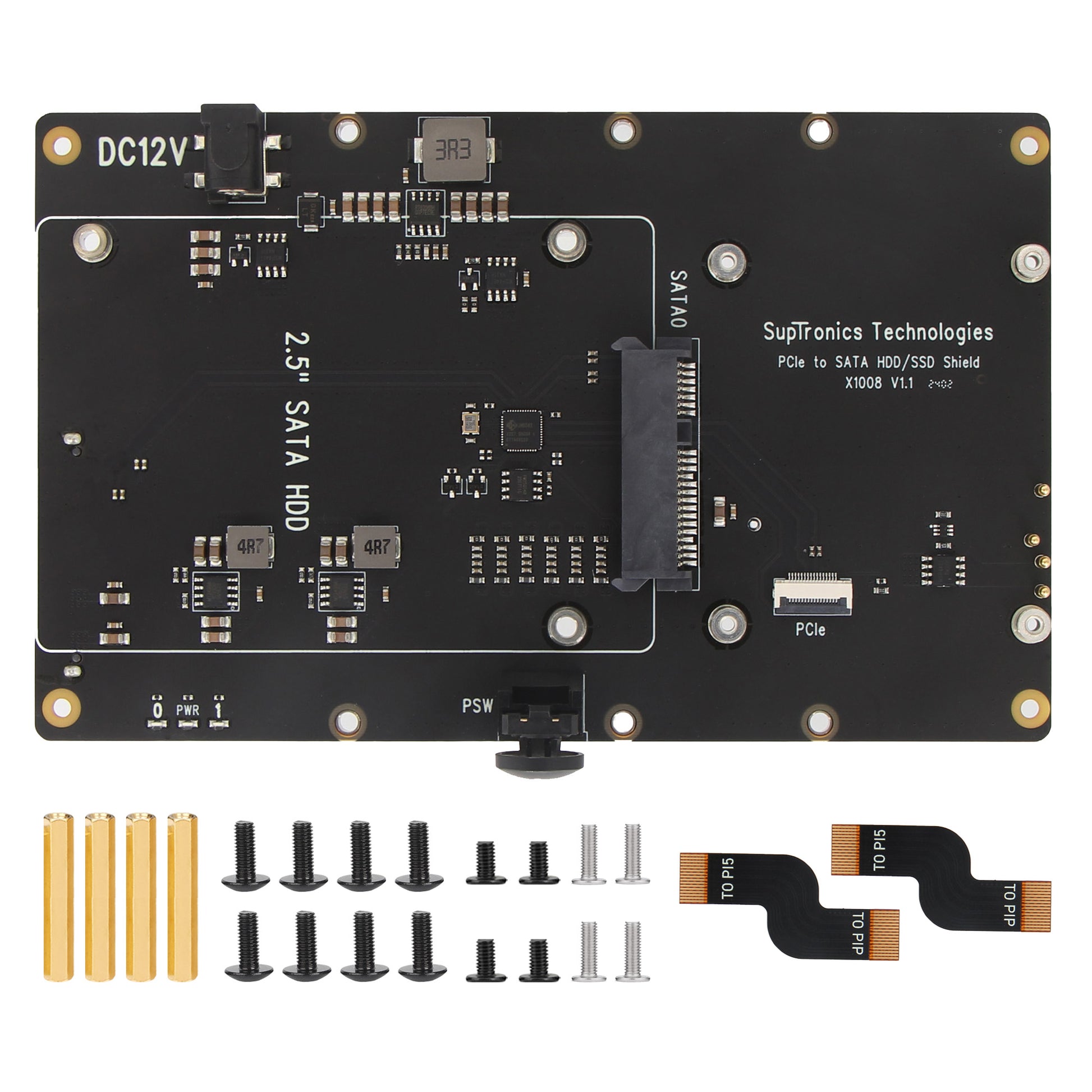 X1008 PCIe to 2 ports SATA HDD expansion board, designed to provide a mass-capacity storage and high-speed storage solution for your Raspberry Pi 5. This board facilitates the simultaneous connection of a 3.5-inch HDD and a 2.5-inch HDD/SSD, unleashing the full potential of your storage capabilities, with SATA 3.0 interface speeds reaching up to 5Gbps.