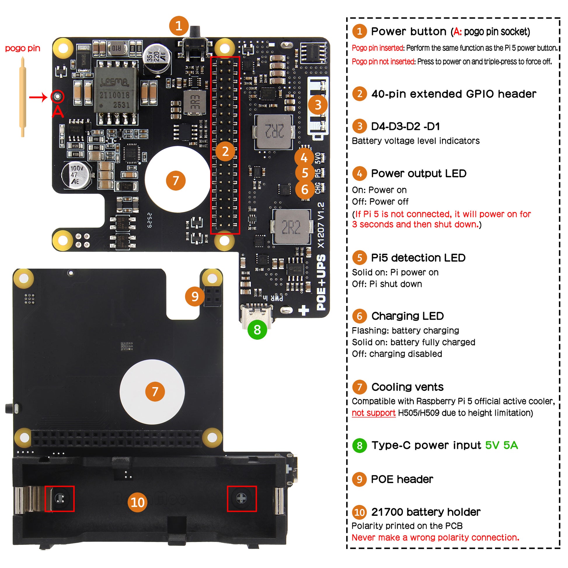 • 1x Pogo pin(For connecting to the Pi 5 PSW through hole)