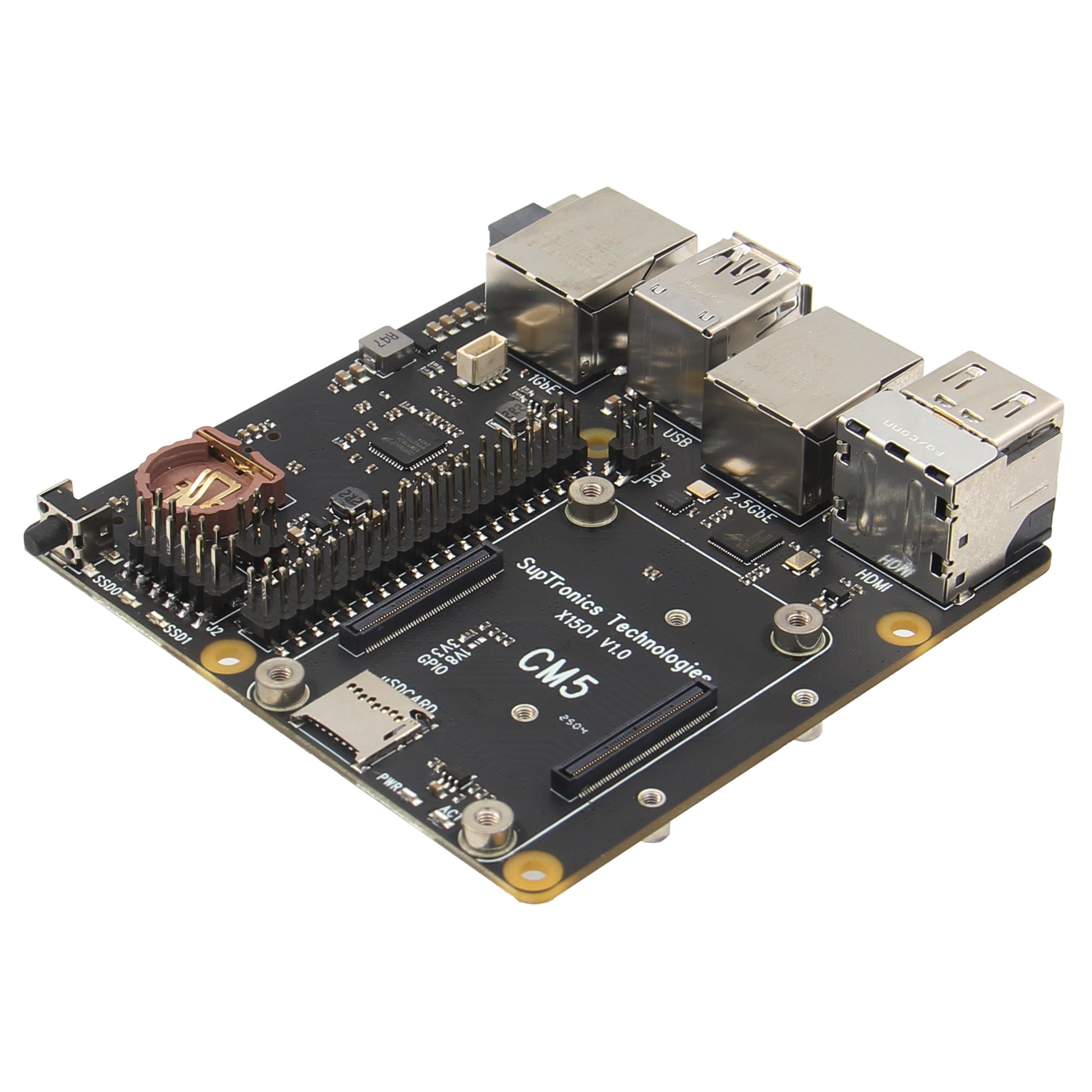 RTC Battery Socket (CR1220 coin battery is not included): Ensures accurate timekeeping during power interruptions.