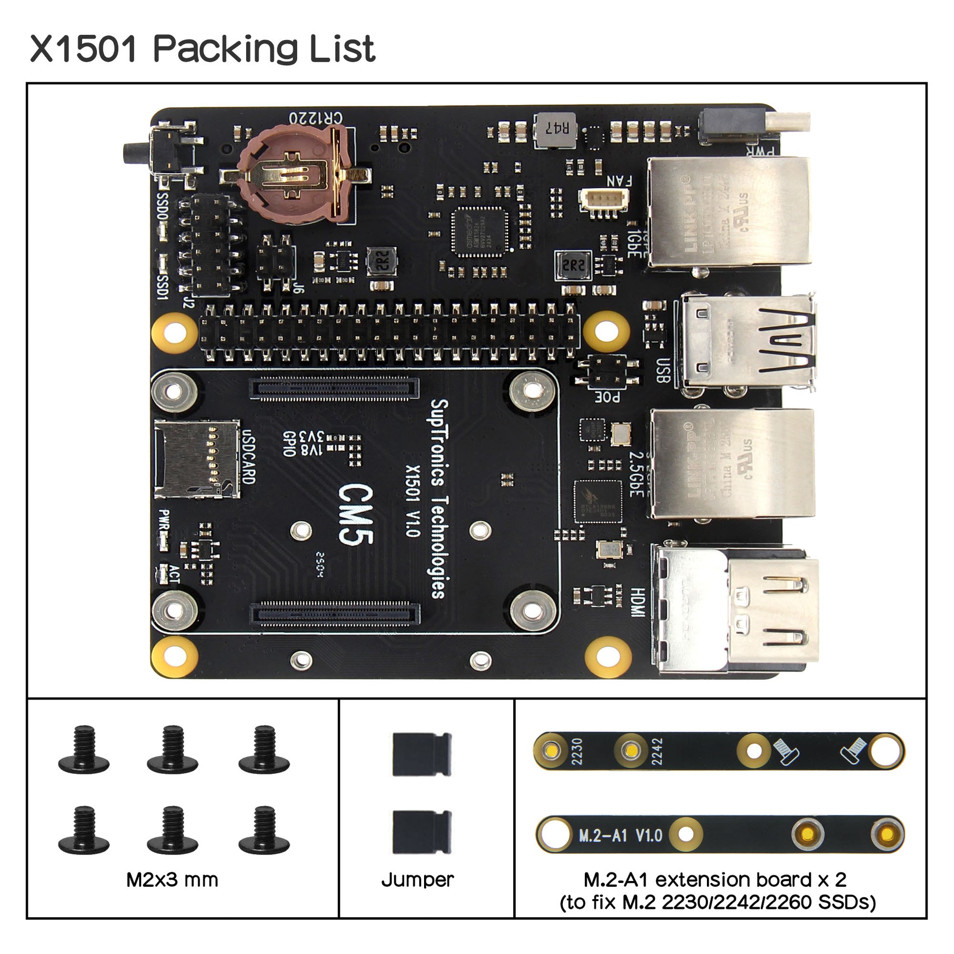 - 1x X1501 V1.0 CM5 carrier board